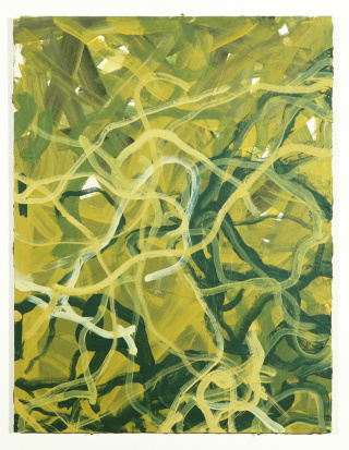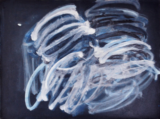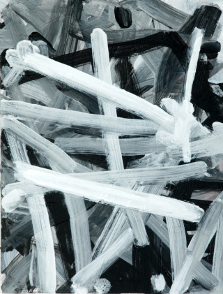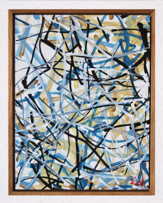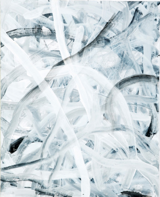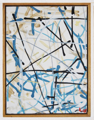 Six Variations on Gestural Computer-Generated Brushstrokes. Series reflecting the quality of spontaneous hand movement. Using the e-David, the same generated path was painted again and again, each time on a new canvas, with the knowledge that this kind of exact