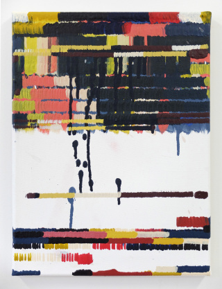 Since 2016 I have been collaborating on an ongoing basis with the e-David painting robot team at the University of Konstanz. Working with the lab developers in parallel to the evolution of the painting machine, I have designed and integrated into the painting system an extensive (and growing) library of brushstrokes, gestures, trajectories and patterns. These can be programmed individually or collectively in various combinations, so that they can be used and executed by the painting robot, enabling a customized and interactive human-machine creative environment. Two closely related features naturally arise from the working methods inherent to this constellation. The integration of computer and robotic technologies in the painterly process makes it possible to capture, save, translate and manipulate simple gestures and more complex tasks as digital information. Quite naturally, this creates a certain distance between the painting and the painter, who is now simultaneously the viewer and the executor. Strokes can be generated that appear organic but are realized in a manner that only a machine is capable of: with exact repetition, for example. The robot becomes a powerful tool to explore an entire realm of creative practice that extends beyond the physical and perceptual limitations of solely human-level practices. As an artist and a consumer of art I wondered, however, if it would be possible to recognize brushstrokes done by a robot in a more complex, generated work. Such questions opened up the terrain for the creation of several groups of works done in series.