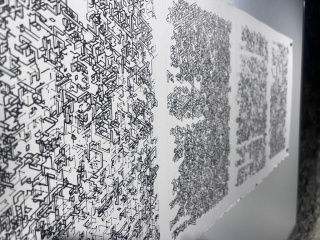 The result is finally drawn on paper with ink using a pen plotter. By visualizing the texts using machine-plotted lines, the artwork seeks to represent the balance between order and chaos, reflecting the human desire to find patterns and assign meaning as a form of control. The decision to keep the work abstract is intended to avoid the subjectivity and locality that written text can evoke and instead point to the underlying structure that holds our set of beliefs together. The resulting artwork is thought-provoking and invites deep contemplation and interpretation of how human beliefs are influencing the creation of contemporary and historical knowledge.